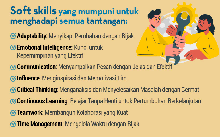 Dari kisah ini dapatlah kita simpulkan bahwa Rani berhasil mengatasi tantangan baru dalam kariernya bukan hanya karena keterampilan teknis yang kuat, tetapi juga karena ia telah mengasah soft skills yang diperlukan. Adaptability, Emotional Intelligence, Communication, Influence, Critical Thinking, Continuous Learning, Teamwork, dan Time Management menjadi pilar utama yang membantunya tumbuh sebagai pemimpin yang efektif.