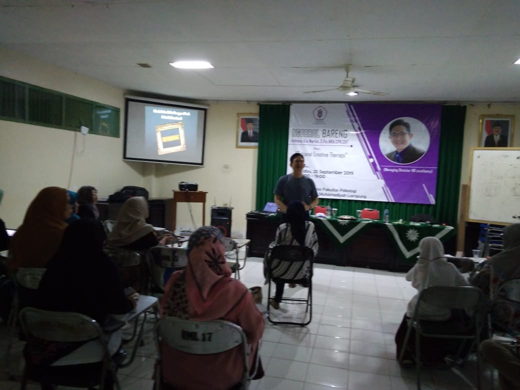 Ngobrol Bareng “Aplikasi Rational Emotive Therapy” Himpsi (Himpunan Psikolog Seluruh Indonesia) Cabang Lampung, 25 September 2019.